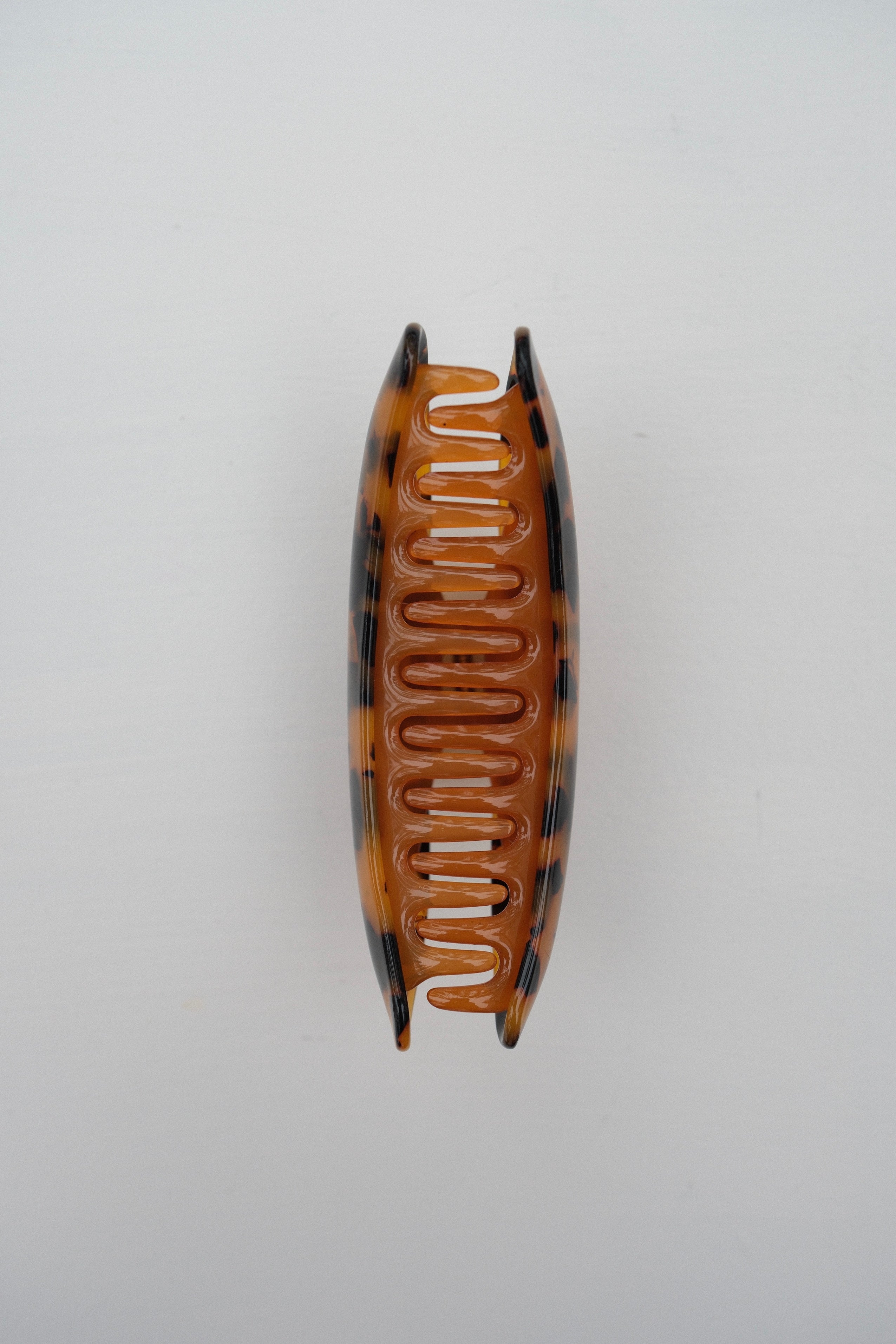 Jumbo Heirloom Claw in Classic Tortoise from Machete. Their largest claw clip, designed to securely hold full updos and large volumes of hair. Handcrafted from fine Italian acetate with a double-walled construction and reinforced hardware. Recommended for long or thick hair of all types.