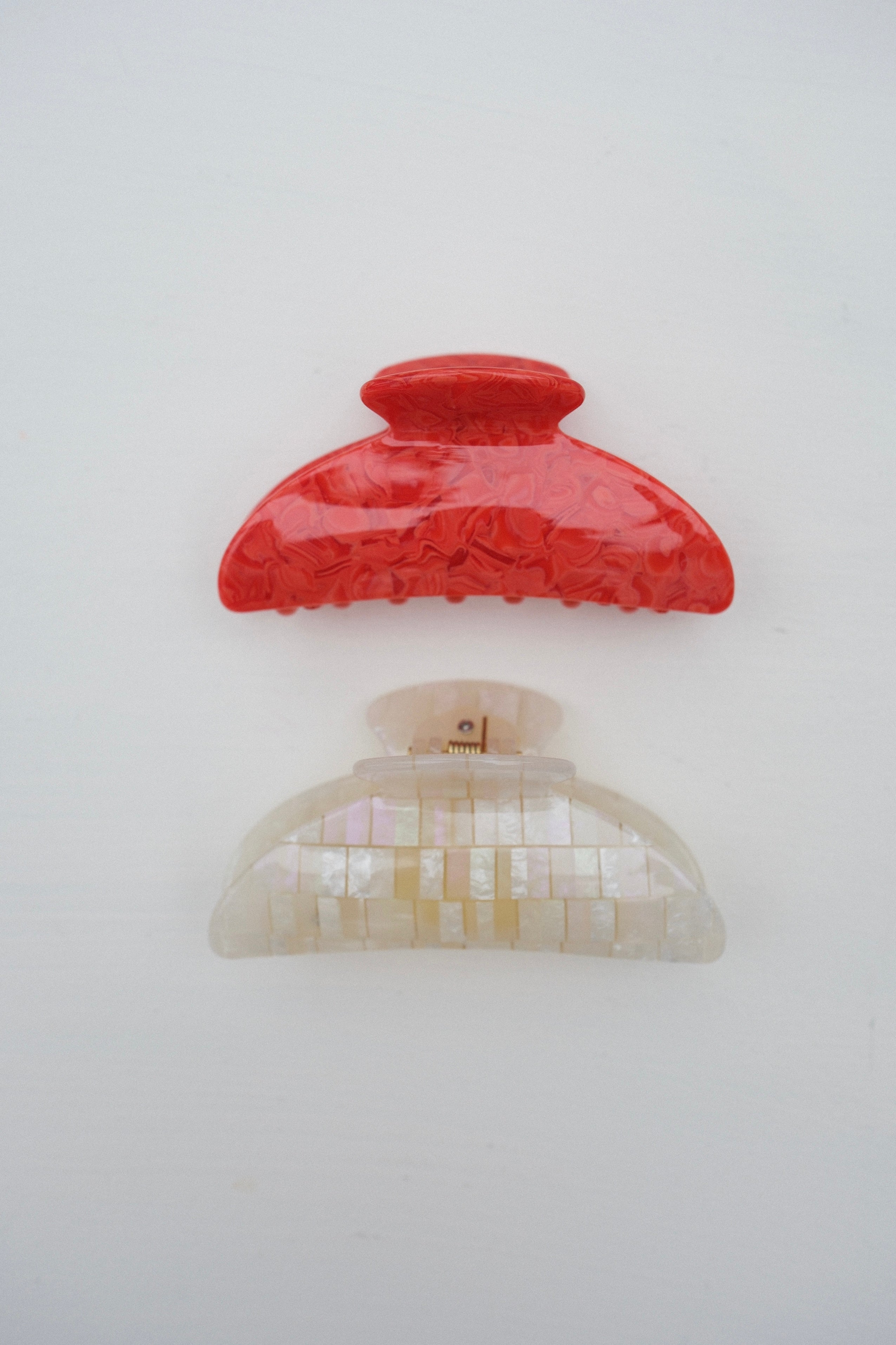 Midi Heirloom Claw in Poppy from Machete. A double-walled hair claw designed to hold medium volumes of hair, handcrafted from Italian acetate with reinforced hardware. Recommended for all hair types and textures.