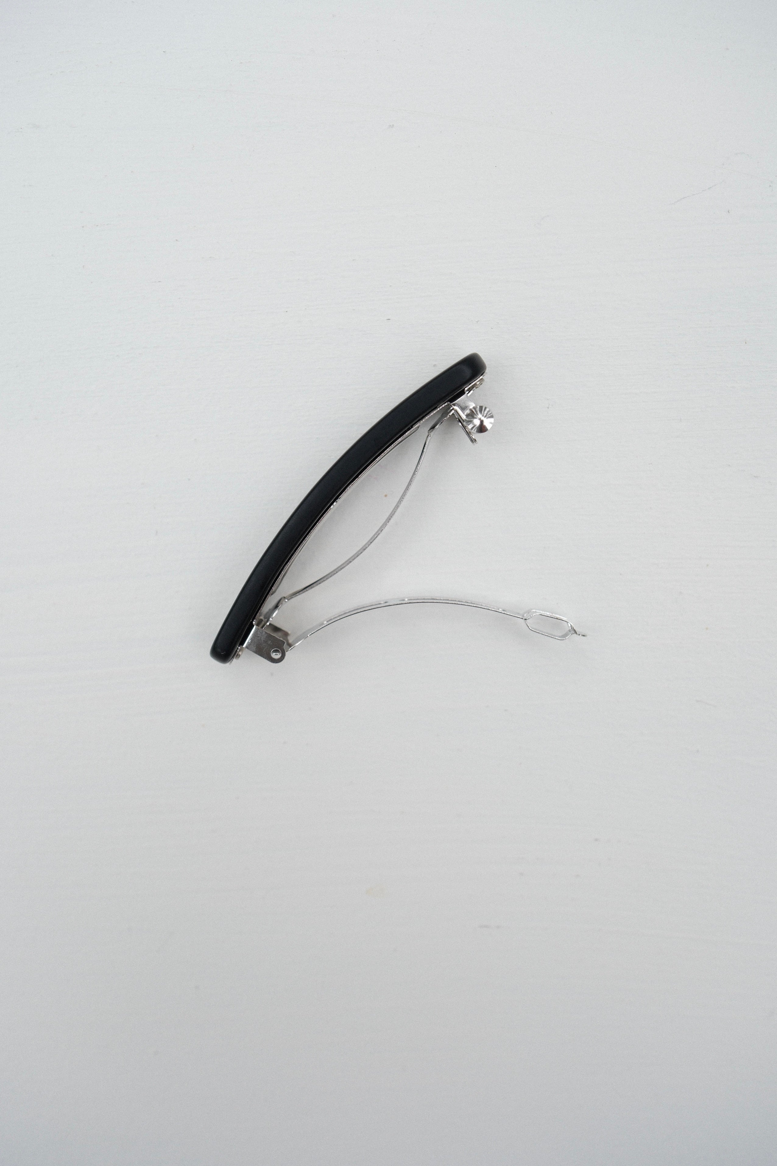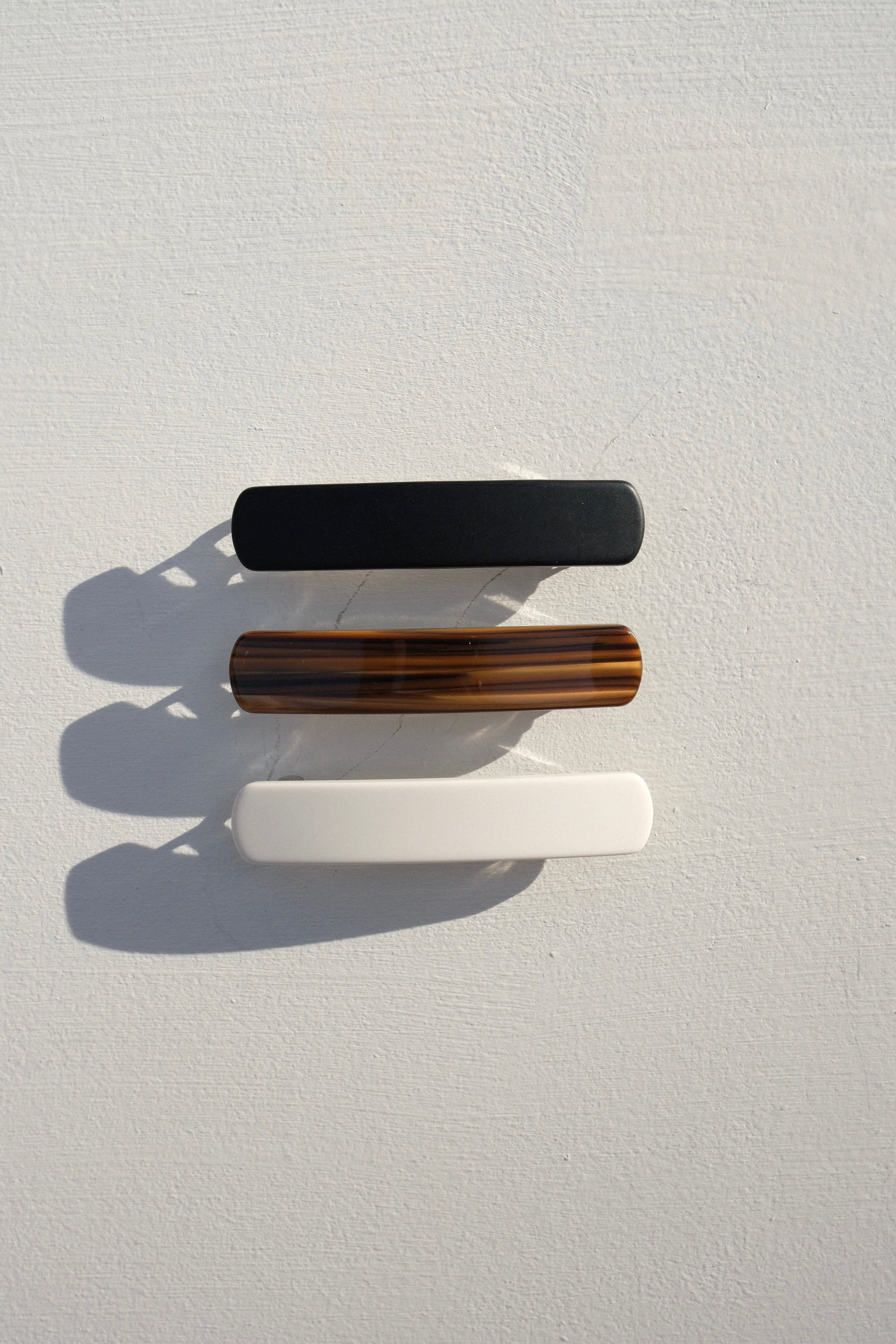 No.3 Heirloom Barrette in Black Matte from Machete. Handmade in France from fine Italian acetate, this heirloom-quality barrette securely holds half or full hair styles. Recommended for all hair types and textures.