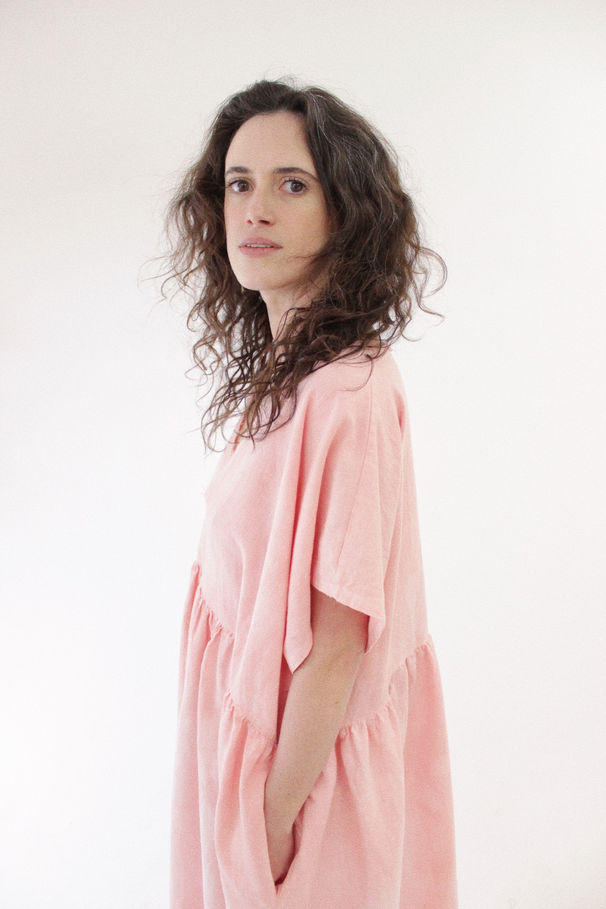 Deep V Dress in a hand dyed linen from The General Public. Oversized fit with a deep v-neckline. Side seam pockets. French Seams. Hand dyed to be one-of-a-kind.