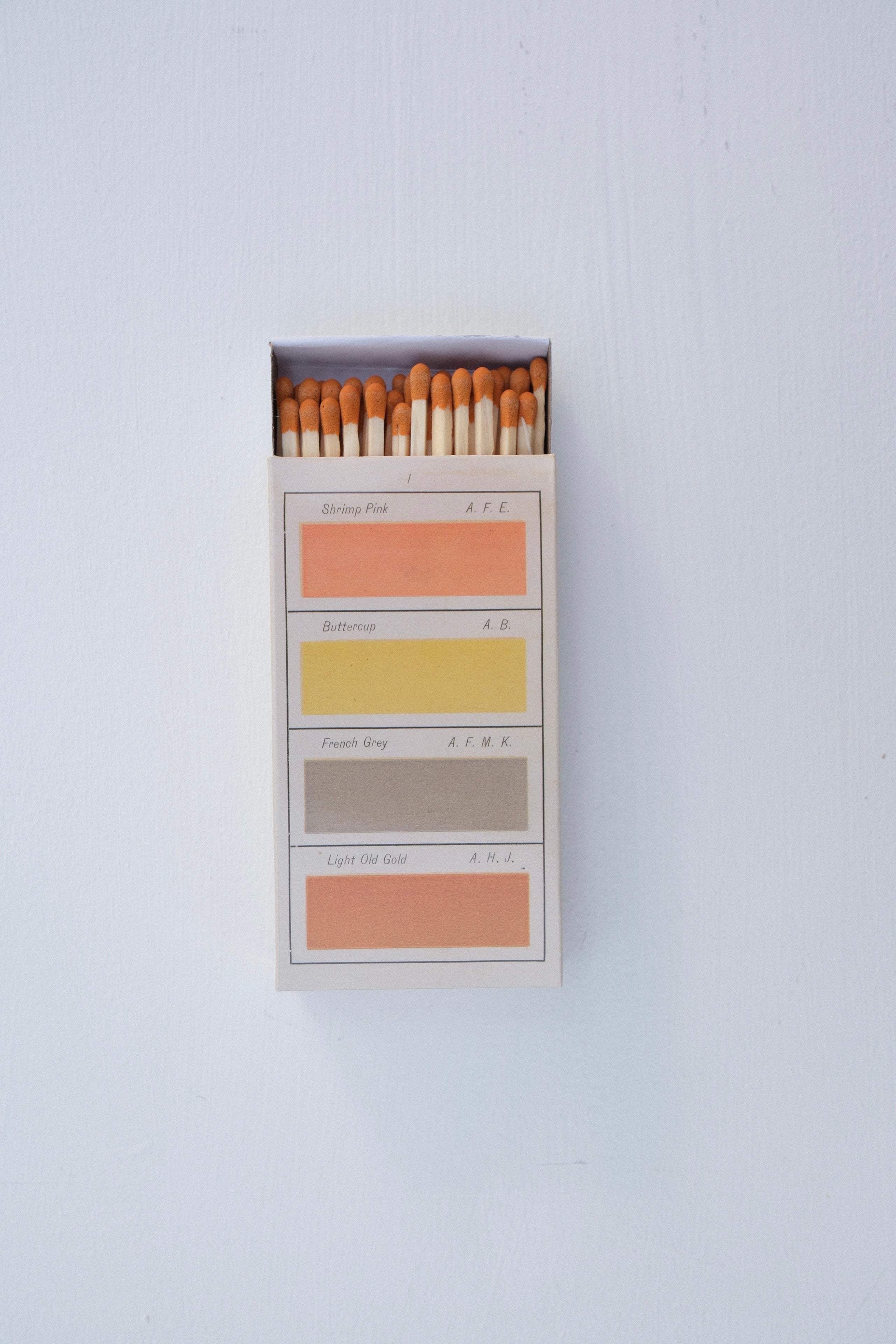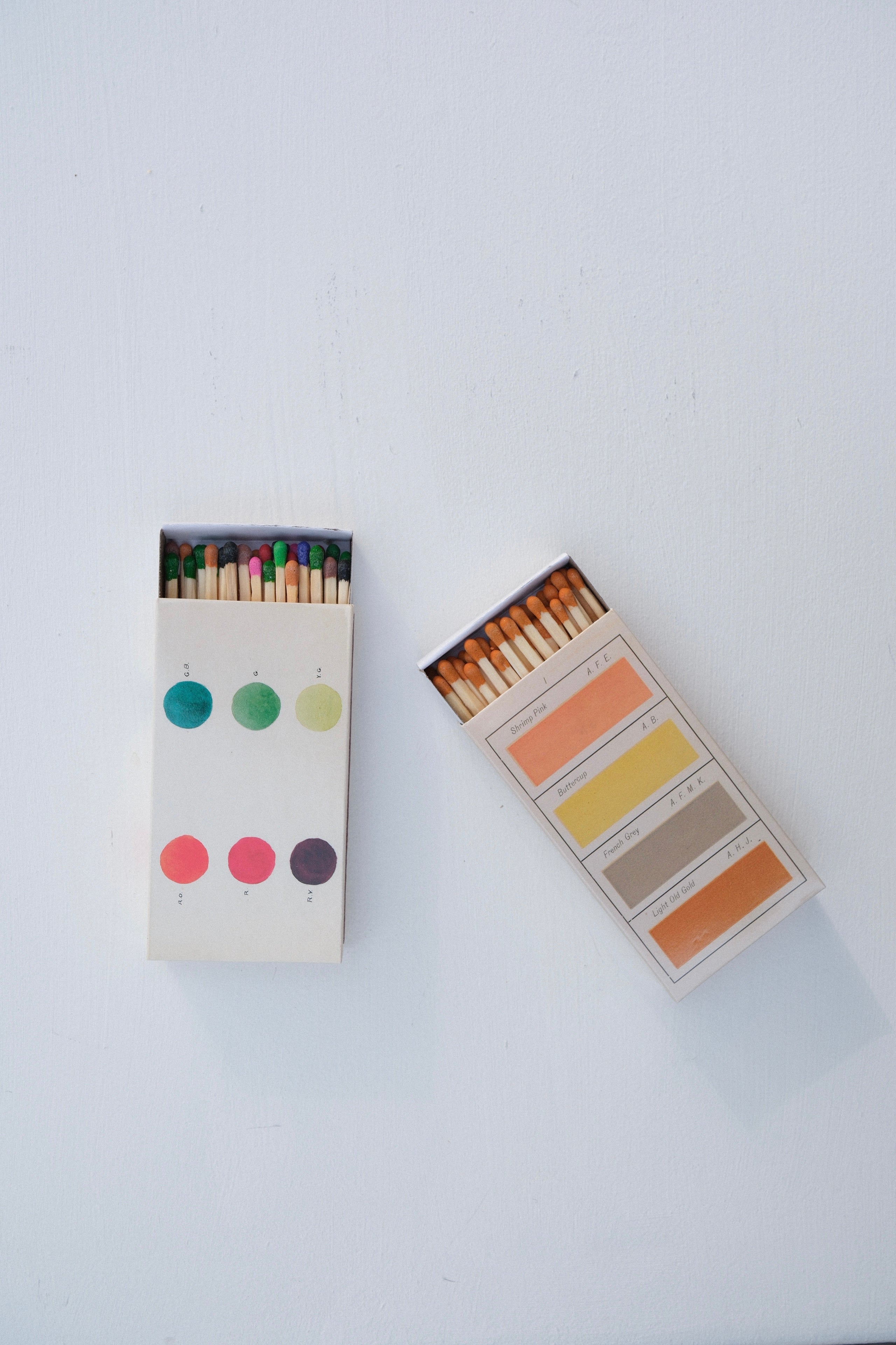 Painters Handbook Matches are a unique designs with coordinating match tips. Sweet as a hostess gift, a perfect pairing to a candle and always an eye catching pop of graphic decor. Safety matches.