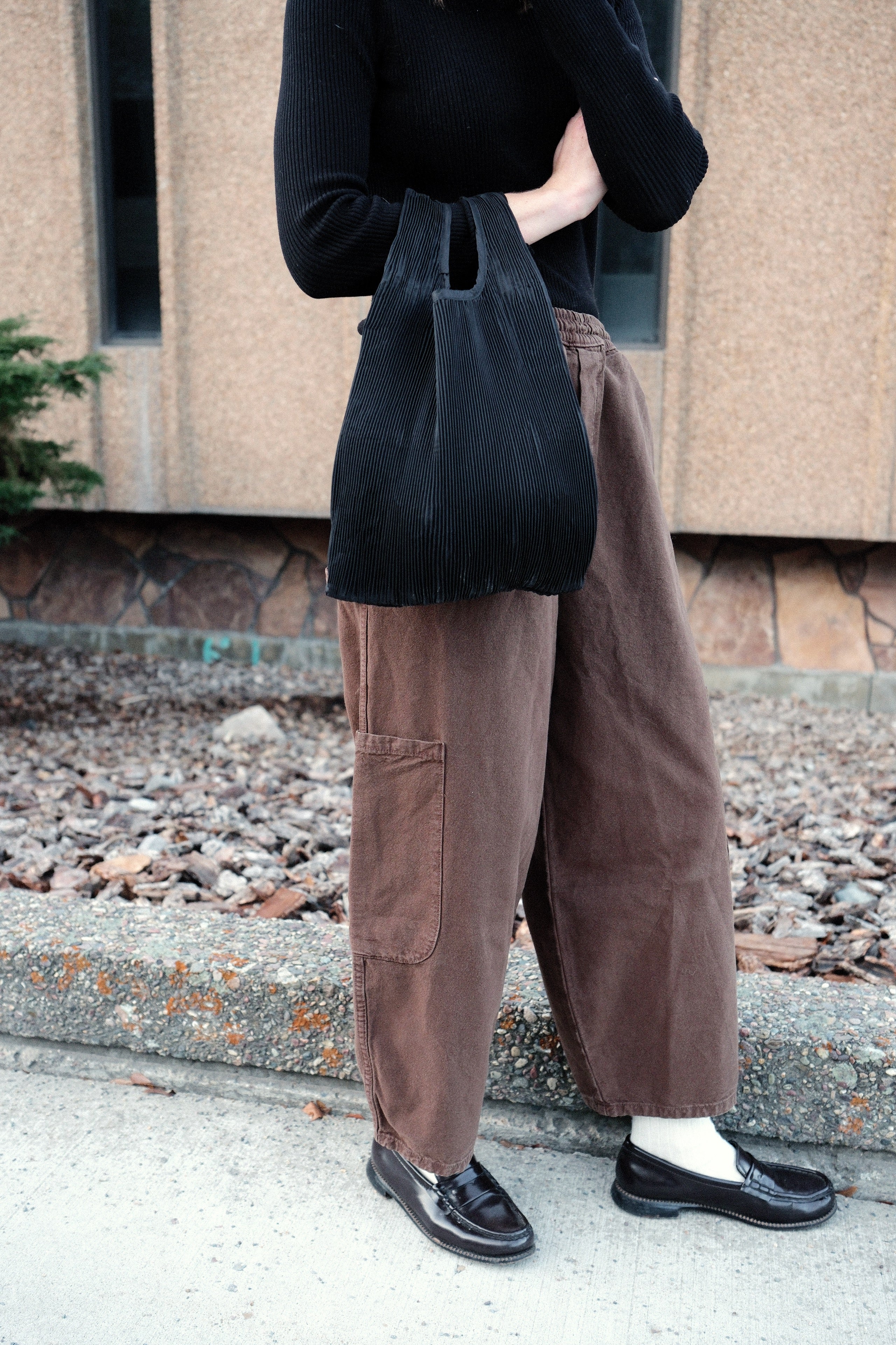 Pleated Bag in Black from Baggu. A special, pleated version of our classic Baby Baggu shape that can be worn as a dressier, fashion forward catch-all bag.