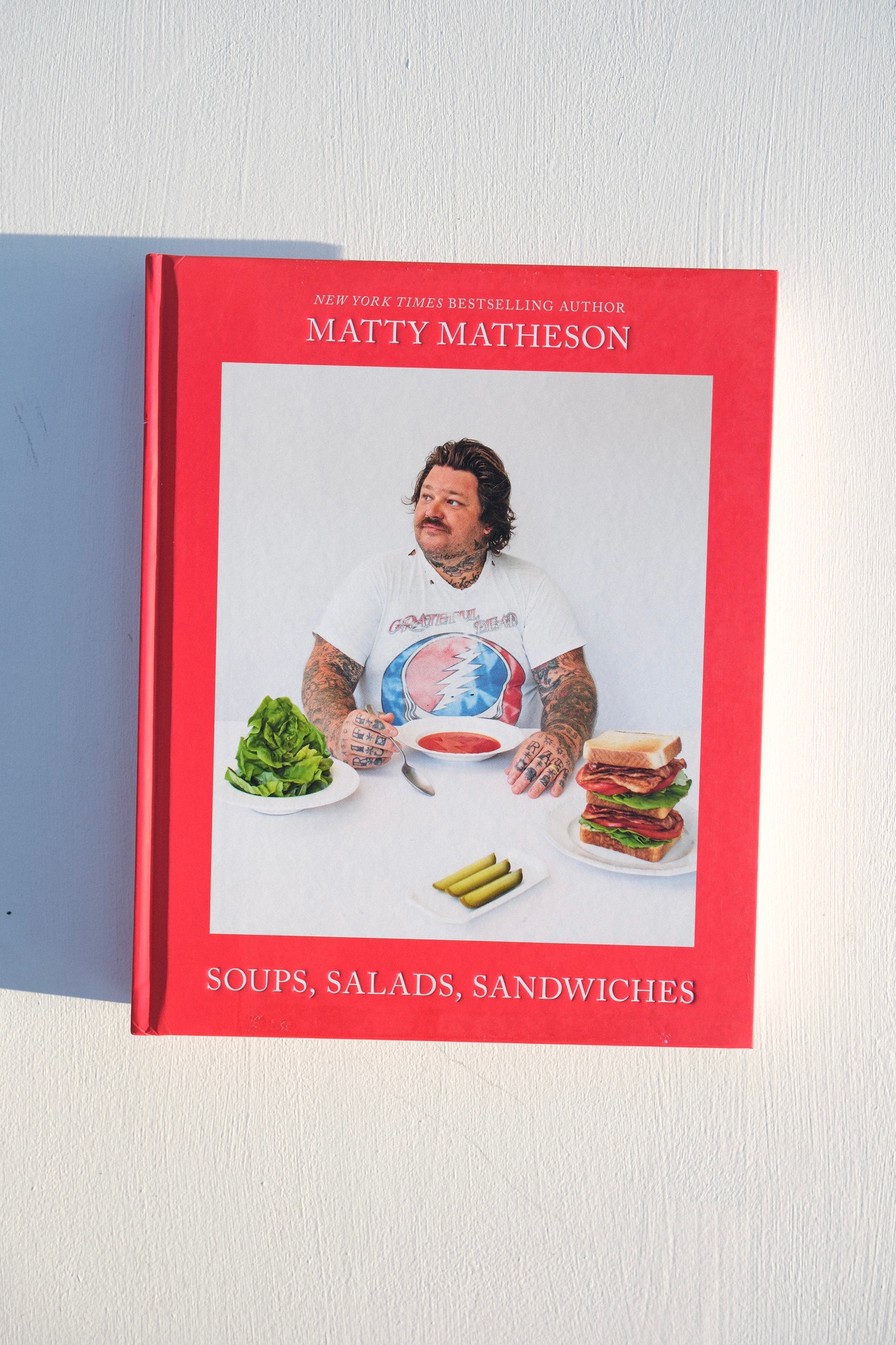 Soups, Salads, Sandwiches - Chances are you’ve eaten a soup, salad, or sandwich in the past day (or maybe all three). This trio makes up so many of our meals but is rarely given the attention it deserves–until now. Matty Matheson, known for his bold, innovative flavors, has created a cookbook that will revolutionize how you think of these kitchen basics. Find your favorite combination by mixing and matching dishes like: • Soups: Giant Meatball Soup in Beefy Tomato Broth; Crab Congee; Creamy Sausage Soup with Rapini and Tortellini; Caldo de Pollo • Salads: Everyone’s Mom’s Macaroni and Tuna Salad; Griddled Salami Panzanella Salad; Peaches with Goat Cheese, Mint, Honeycomb, and Olive Oil • Sandwiches: Cubano; Italian Combo; Sun Warmed Tomato; Banana Bread French Toast with Fried Egg, Peameal Bacon, and Maple Syrup Packed with character, personal stories, 126 scrumptious recipes, and vivid photographs of a day-in-the-life.